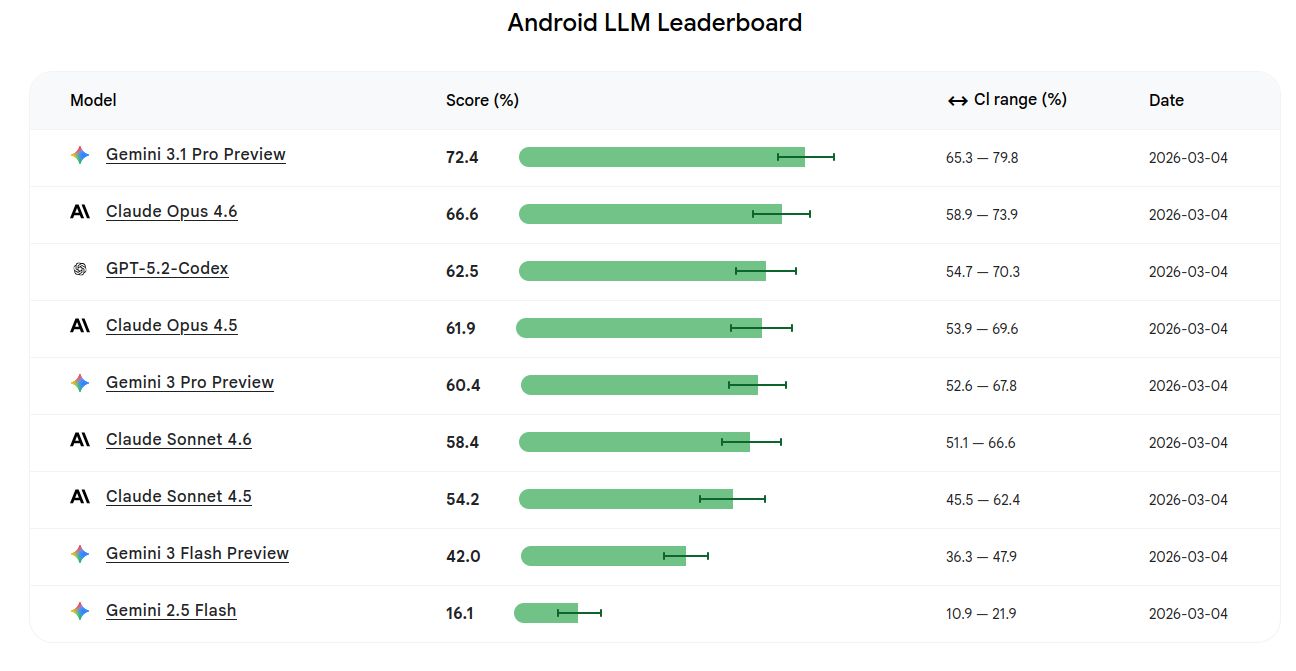 Benchmark y leaderboard de LLMs para tareas de desarrollo Android, con metodología y repo para replicar los tests.Fuente: [clic aquí]
