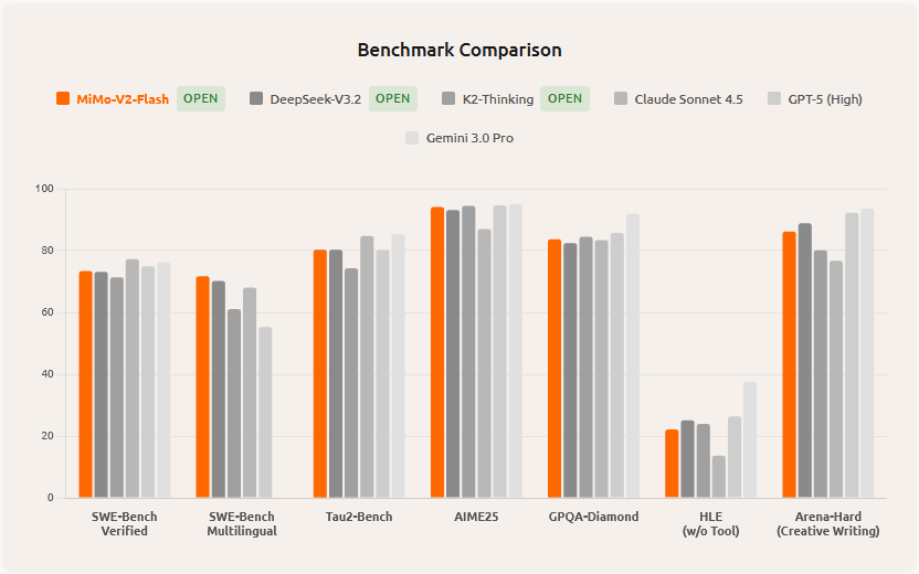 MiMo v2 Flash (Xiaomi) — lanzamiento de modelo orientado a eficiencia/velocidad.