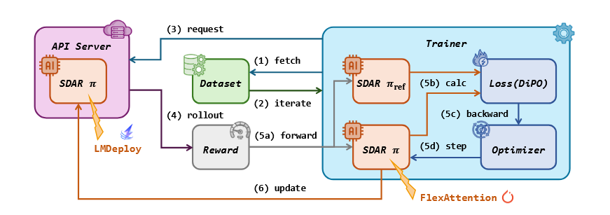 Primer dLLM post-entrenado con GRPO libre de sesgos, orientado a razonamiento matemático de alta dificultad con inferencia optimizada vía LMDeploy.